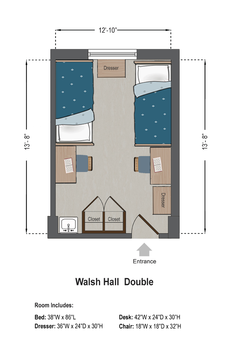 Located on the eastern side of Griesedieck Hall in the Griesedieck Complex, the fully renovated Walsh Hall is primarily home to double rooms for freshmen and sophomore students.