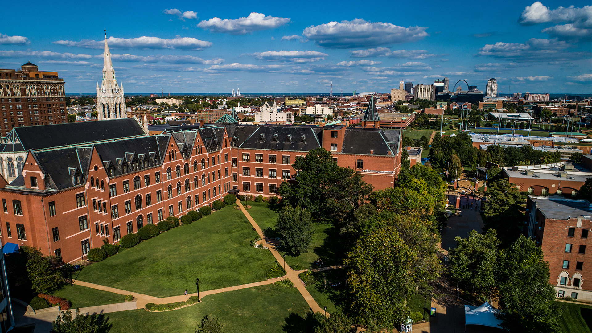 SLU Clock Tower Zoom Background SLU College Church Aerial Zoom Background SLU Quad Aerial Zoom Background